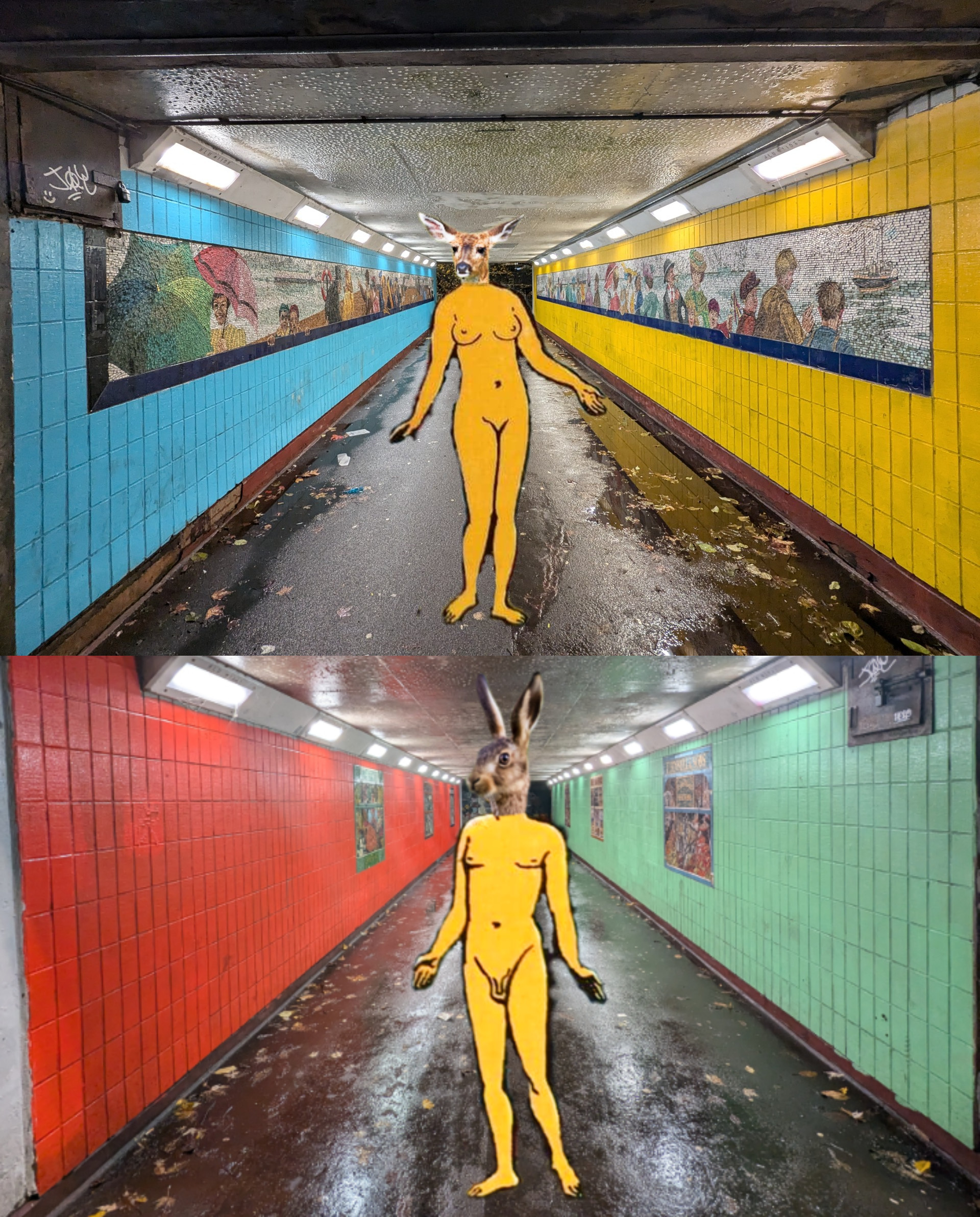 My collages use my own original photographs, and consider what our relationship with our environment could be by channelling the weird, the liminal and the illusional. Through the addition of elements from other sources such as vintage illustrations, the photographs – visual representations of our known world – are transformed into spiritual and imaginal realms as I explore the connections between the human and the more-than-human. I imagine what might lie beyond that which we can perceive with our senses, creating fantastical scenes of natural and urban dreamscapes, evoking alternative ways of engaging with the universe and the spirits & creatures that are our fellow travellers within it.